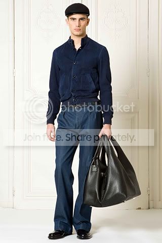 Stuart Vevers has been at Loewe just a year, moving from a gig as Mulberry's hit bag designer in London to a new life in Madrid to take on the luxury leather goods label. He's learning. "I was a bit notorious for overweight bags with giant hardware before," he laughed. "But here I've made everything soft and light. There's 160 years' worth of know-how, so I'm really concentrating on bringing out what we're good at." For pre-fall, Vevers pointed to a glossy brown leather coat with a plain man's belt tied around as "quintessential" Loewe, a lifetime classic. But finding a profile for the woman who might buy it is a work in progress. "The attitude is super-groomed but a bit tough. She has a definite shape, a waist, likes bold jewelry." She might also like to shrug on a mannish topcoat in a blurry herringbone or snap up a pair of super-fine suede gauntlets. The real test of Loewe's right to command the high ground, though, is the bags. Vevers said he'd studied a sand-colored suede carry-on piece, originally made in 1975, and applied the principle of soft structure to his ideas. That means puffy napa pouches, squashed ostrich hobos, and a lot of chain-handled lizard bags. The Vevers punch is in the proportion and details: This season the fastenings are bolt heads and the chains are as fine as can be.